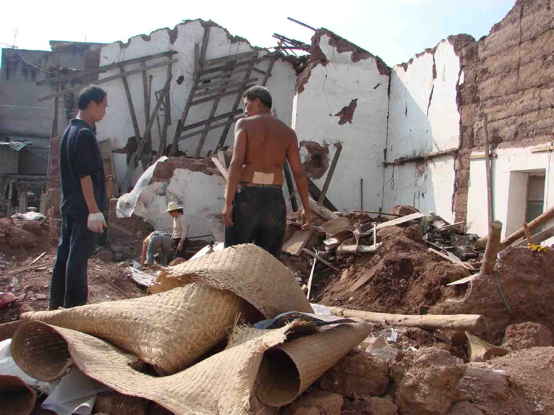 漢源縣黑石河?xùn)|路土坯房屋承重墻倒塌及屋頂坍塌