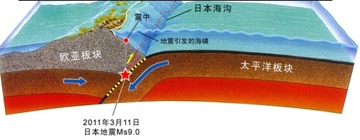 圖1 日本大地震(M9.0)發(fā)生的板塊俯沖模型