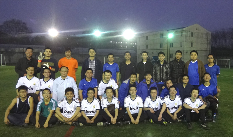 為豐富職工生活、強(qiáng)健體魄,2013年3月15日工程院足球隊(duì)與中國(guó)地震局地震研究所研究生隊(duì)在東湖足球場(chǎng)進(jìn)行了一場(chǎng)足球友誼賽。