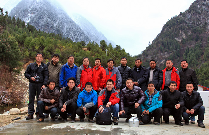 科考隊(duì)由中國國電集團(tuán)公司黃俊楨經(jīng)理、李國善主任,西北勘察設(shè)計(jì)院張應(yīng)海副總工、王明疆副總工、王進(jìn)學(xué)高工、李?;⒏吖?、巨天力高工、陳思剛高工、李諾高工、益波工程師、王有林工程師及我院余松工程師等12人組成??瓶悸肪€始于波密八蓋鄉(xiāng)日卡村,過啞聾,沿易貢藏布往上游前行,后原路返回,總行程60余公里;途經(jīng)大部分地區(qū)為原始森林無人區(qū),科考充滿艱辛、挑戰(zhàn)。