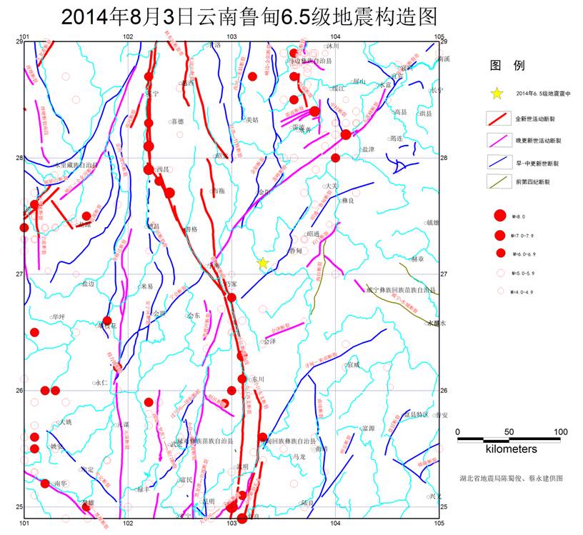 2014年8月3日16時30分,云南省昭通市魯?shù)榭h(N27 1°,E103 3°)發(fā)生6 5級地震,震源深度12千米。云南省大部分地區(qū)震感強烈,震區(qū)生