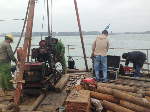 本次物探勘察涉及到多種地球物理方法,包括海域地震映像勘探、海洋磁法、側(cè)掃聲納、剪切波測(cè)試及陸域地震反射和管線探測(cè);由于項(xiàng)目涉及到陸域和海域兩個(gè)部分,方法也較多;海域部分涉及到風(fēng)浪和潮汐變化,陸域部分主要在環(huán)島主干道,外界干擾交嚴(yán)重,因此項(xiàng)目難度較大。我院羅登貴副院長(zhǎng)親臨現(xiàn)場(chǎng)指導(dǎo)工作,勞雷工業(yè)公司總工程師程大祥在現(xiàn)場(chǎng)與我院工程師進(jìn)行了技術(shù)交流。經(jīng)過(guò)一個(gè)月的外業(yè)勘探工作,我院順利完成項(xiàng)目任務(wù)并取得業(yè)主認(rèn)可。