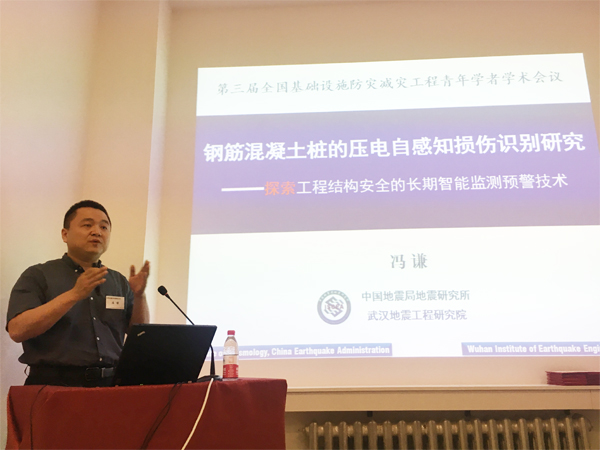 2018年6月8日至11日,“第三屆全國(guó)基礎(chǔ)設(shè)施防災(zāi)減災(zāi)工程青年學(xué)者學(xué)術(shù)會(huì)議”在大連舉行,副院長(zhǎng)馮謙受邀擔(dān)任“結(jié)構(gòu)健康監(jiān)測(cè)及風(fēng)工程”分會(huì)主席,并作特邀報(bào)告。