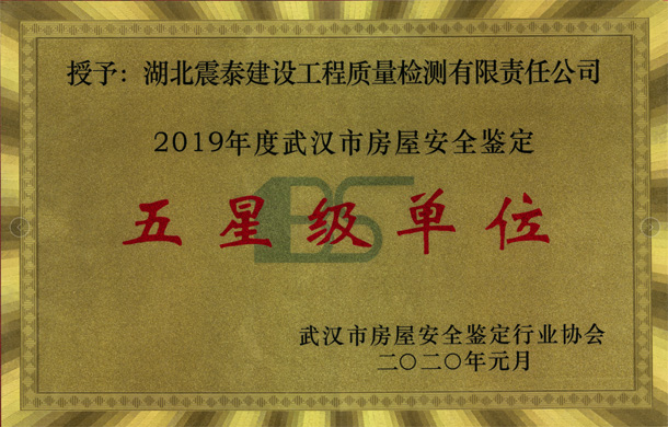 我司被評為武漢市房屋安全鑒定五星級單位